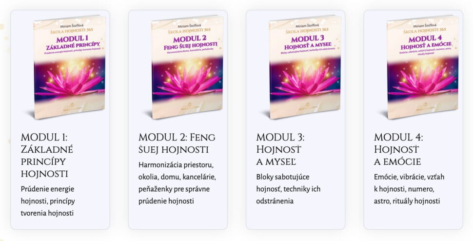 Škola hojnosti je komplexný program, do ktorého som vložila celé svoje know-how o hojnosti.  365 lekcií, v ktorých máš všetko, čo potrebuješ vedieť o hojnosti. Všetko, čo reálne funguje. Nielen mne. Výsledky mojich klientiek sú toho dôkazom.