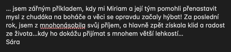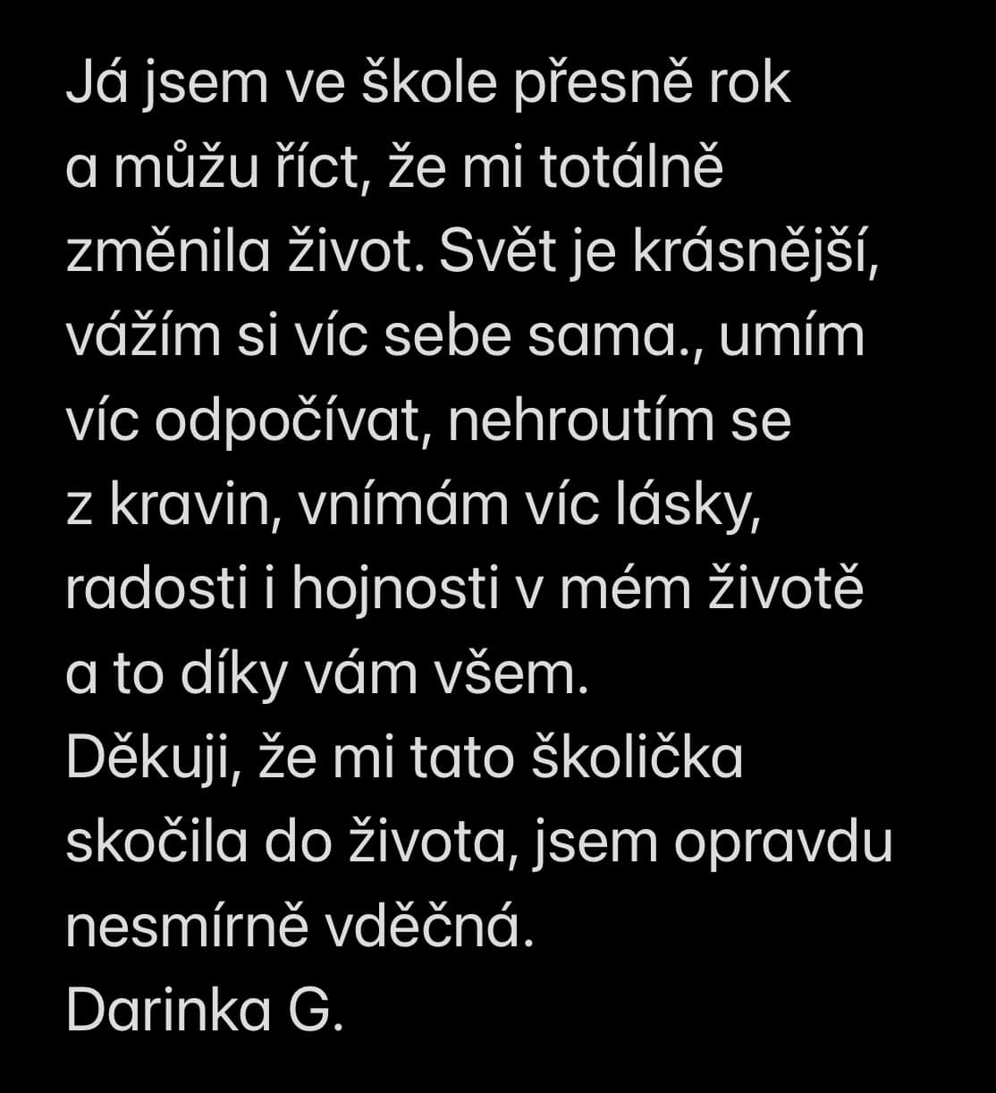 Miriam zasa dakujem za školičku. A aj preto zostávam v tejto silne inšpiratívnej skupine. Prišla som sem ked som to vel'mi potrebovala a aj po rokoch sa tu ucim nové veci a posúvam dopredu.